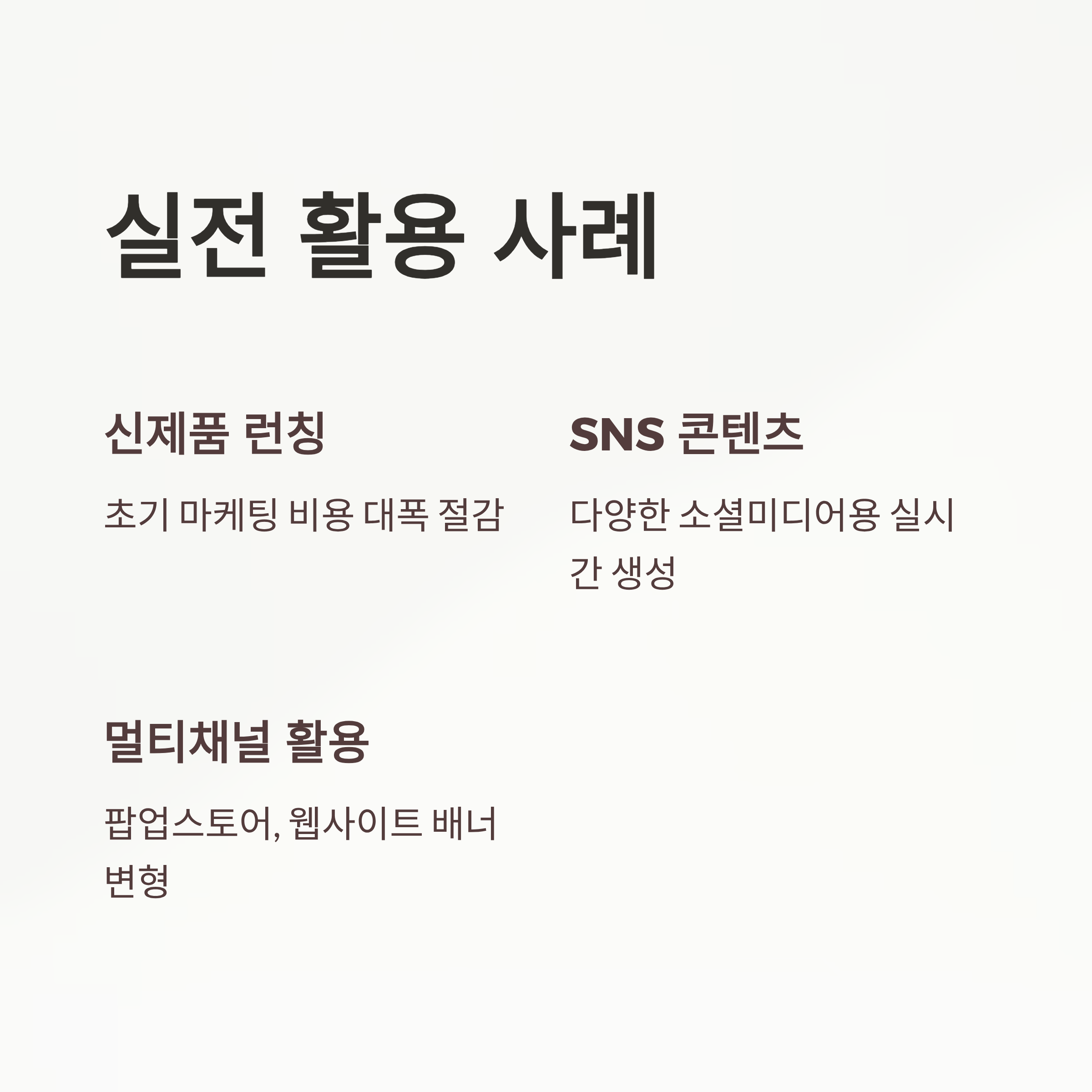 - 신제품 런칭 광고에서 빠른 이미지 제작으로 초기 마케팅 비용 절감