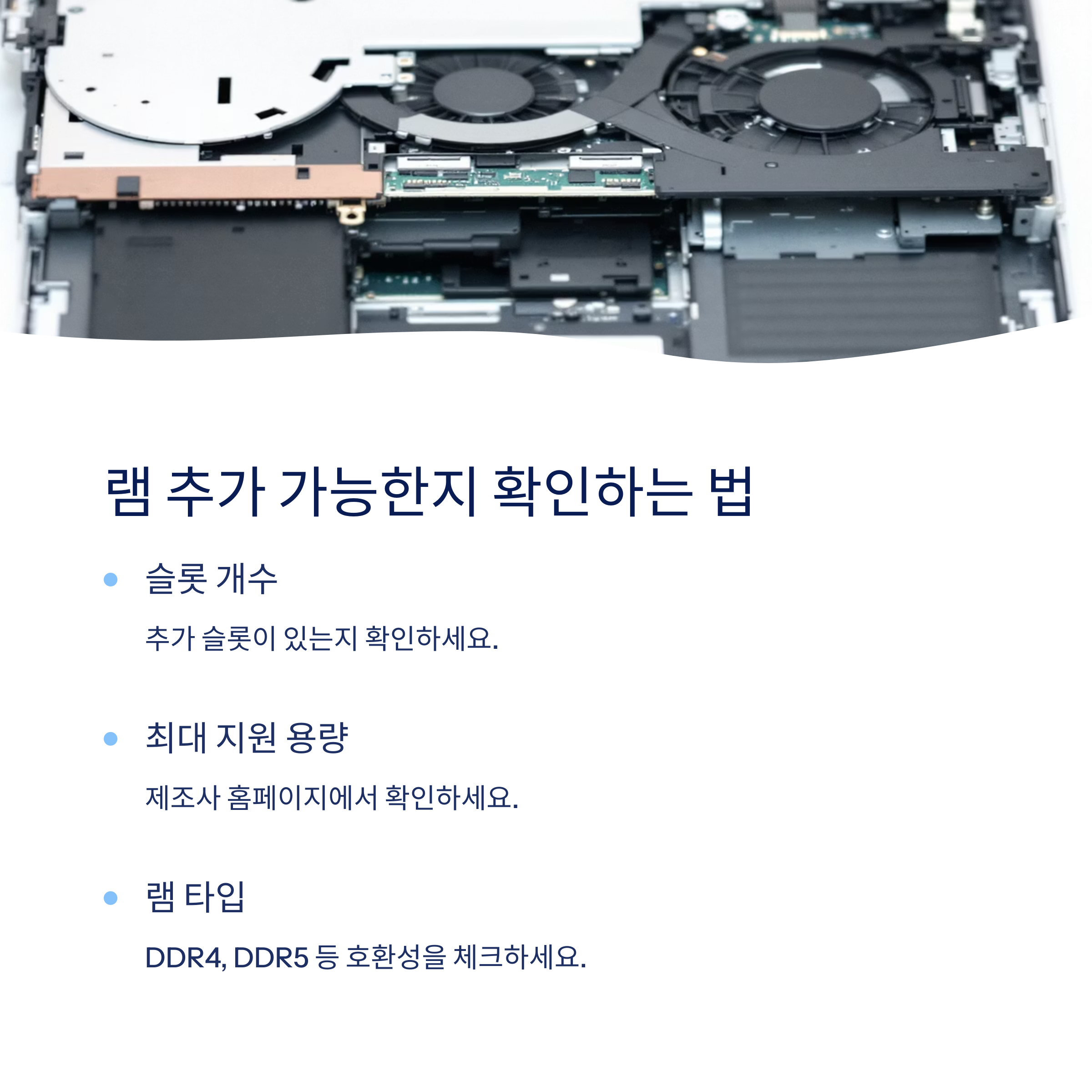 - 램 슬롯을 확인하고 기존 램과 호환되는지 확인