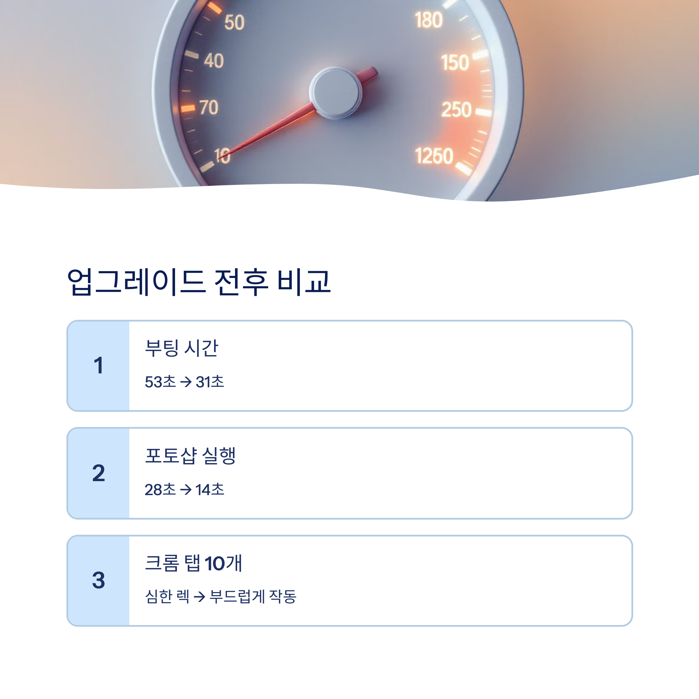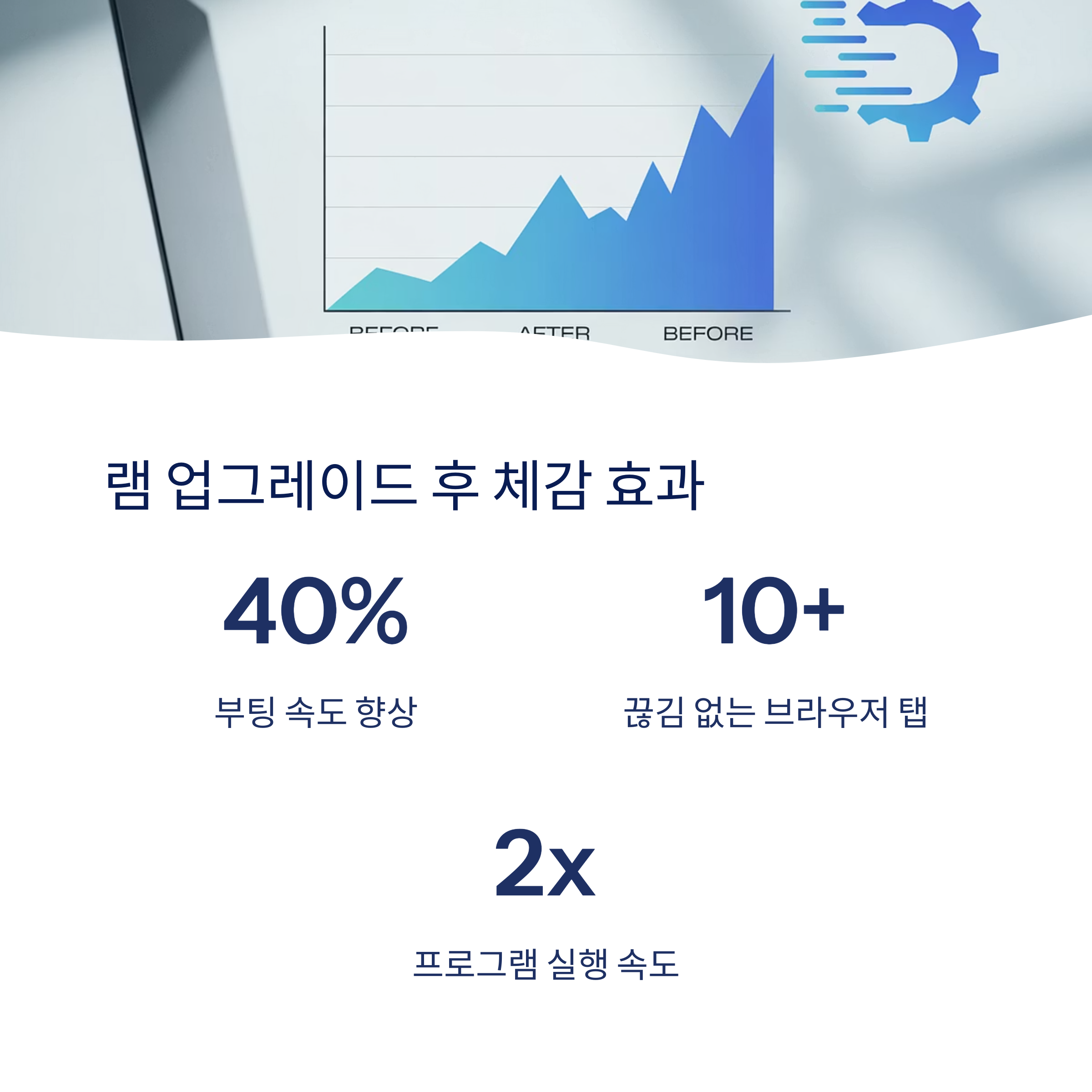 제가 직접 램을 8GB에서 16GB로 업그레이드한 후, 확실히 체감 속도가 달라졌어요. 아래는 실제로 느낀 변화예요.