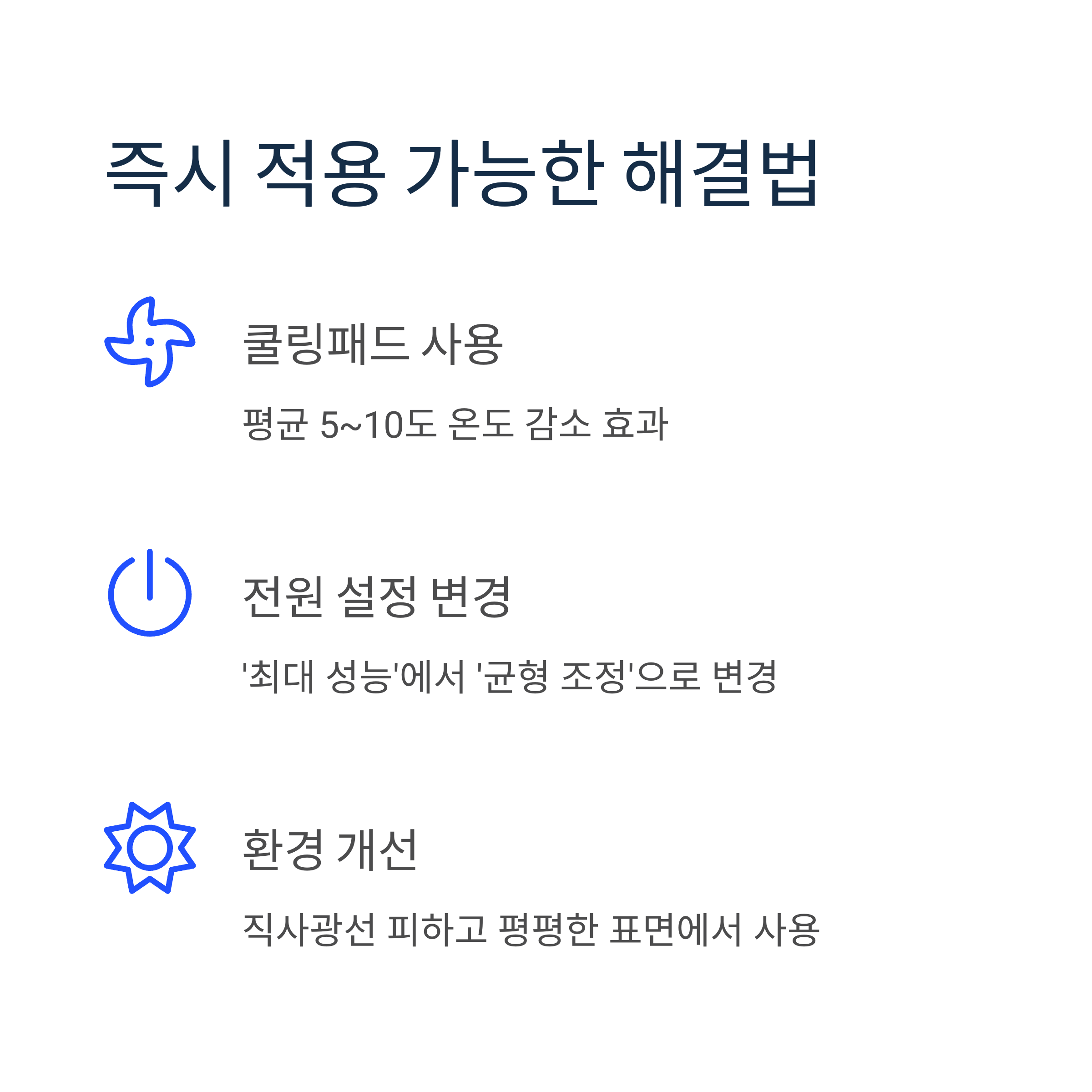 - 노트북 받침대나 쿨링패드 적극 활용하기