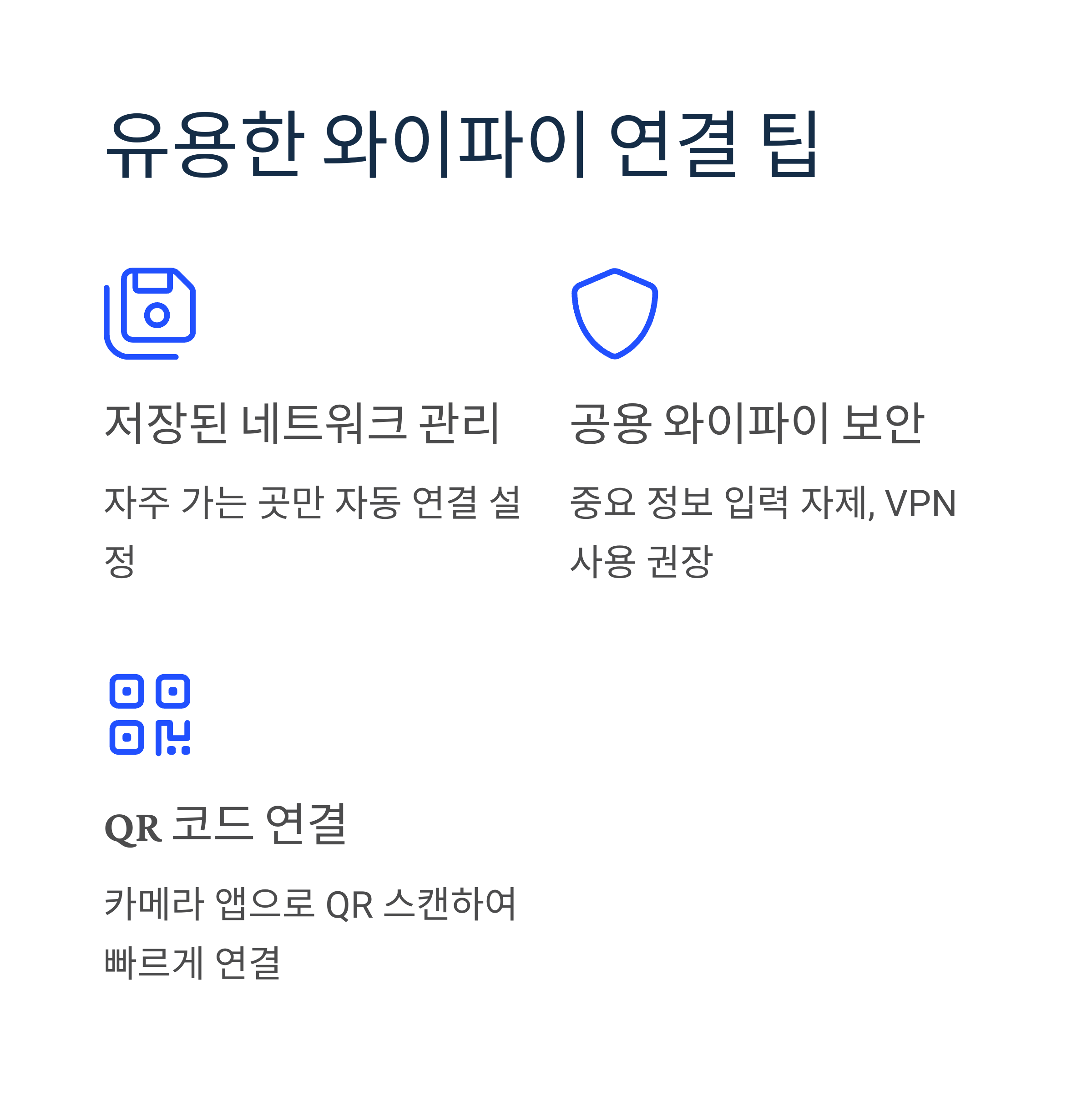 자주 가는 카페나 도서관의 와이파이는 "자동으로 연결" 옵션을 체크해두면 편리합니다. 하지만 한 번만 방문한 곳의 와이파이는 저장된 네트워크 목록에서 삭제하는 것이 좋아요. 저는 한 달에 한 번 정도 저장된 네트워크를 정리하는 습관이 있습니다.