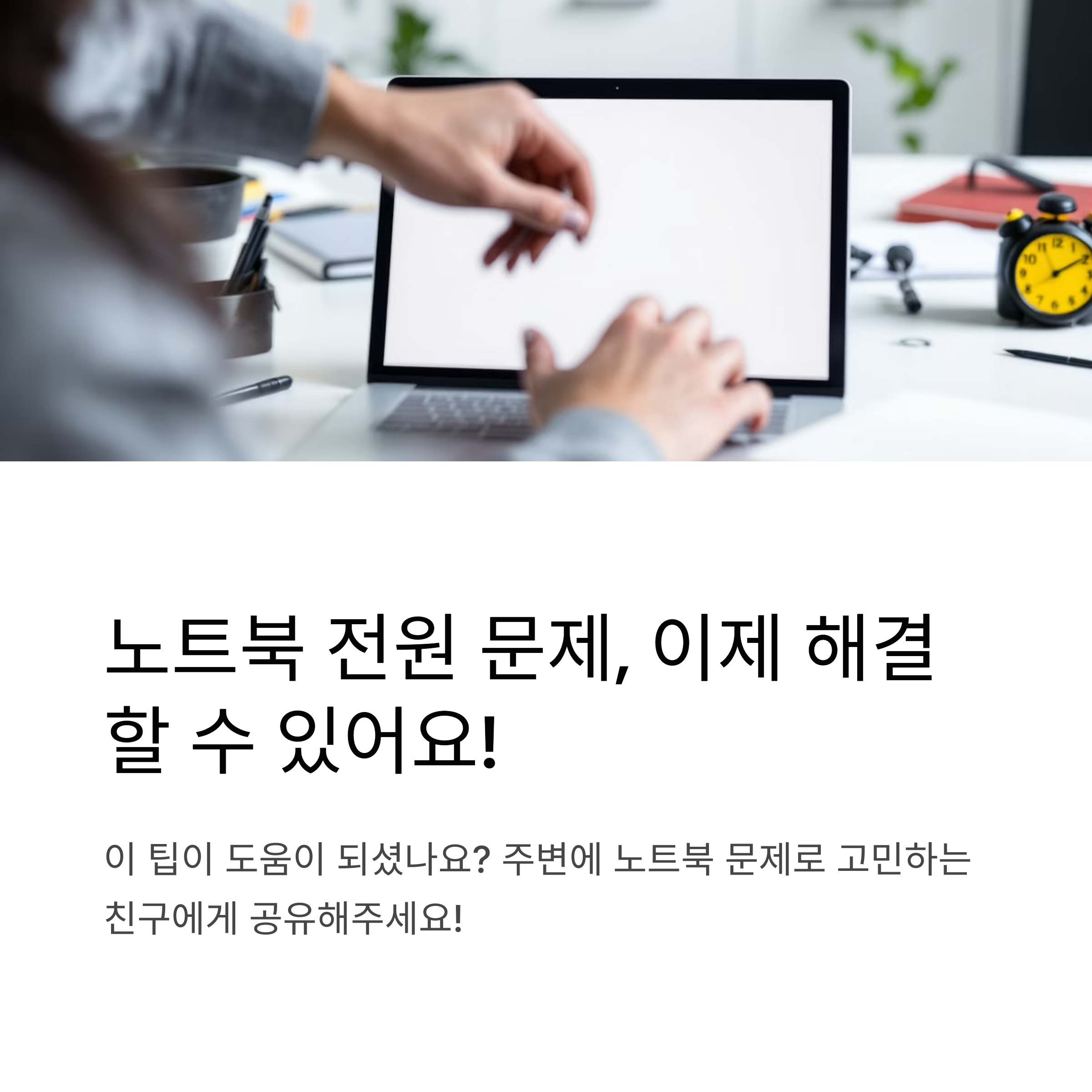 여기까지 읽어주셔서 감사합니다. 노트북이 갑자기 부팅되지 않거나 전원이 들어오지 않을 때, 당황하지 않고 차근차근 확인해보면 대부분은 간단한 원인에서 비롯된 경우가 많아요.