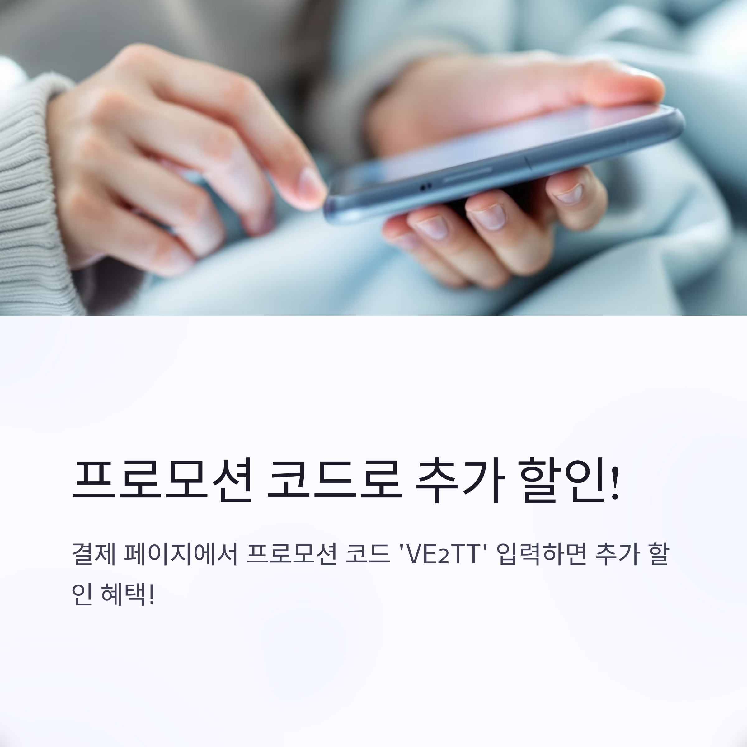 결제 페이지에서 ‘프로모션 코드’란에 VE2TT를 입력해보세요.