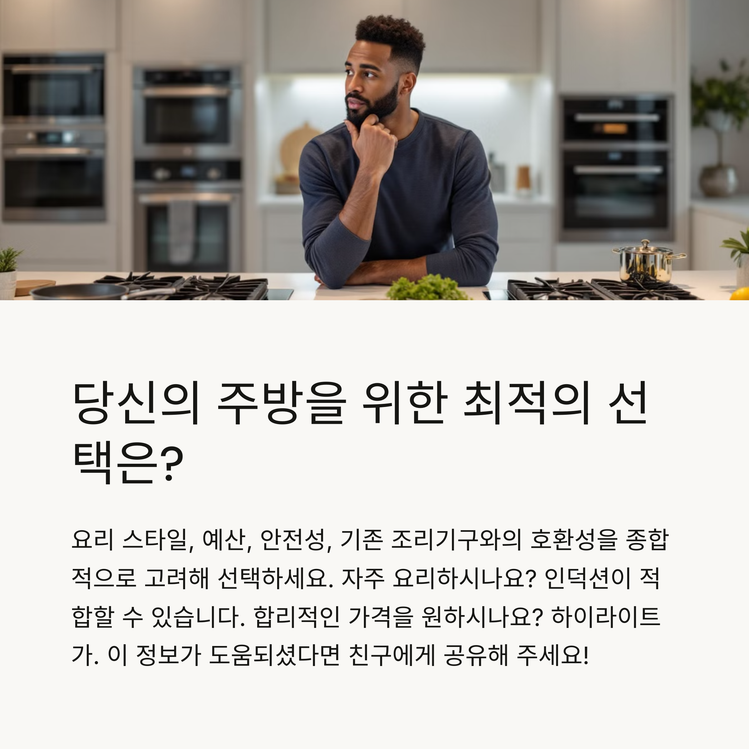 특히 인덕션과 하이라이트 사이에서 고민하시는 분들 많으실 거예요. 저도 얼마 전 주방 리모델링하면서 이 두 가지 사이에서 엄청 고민했거든요! 😅