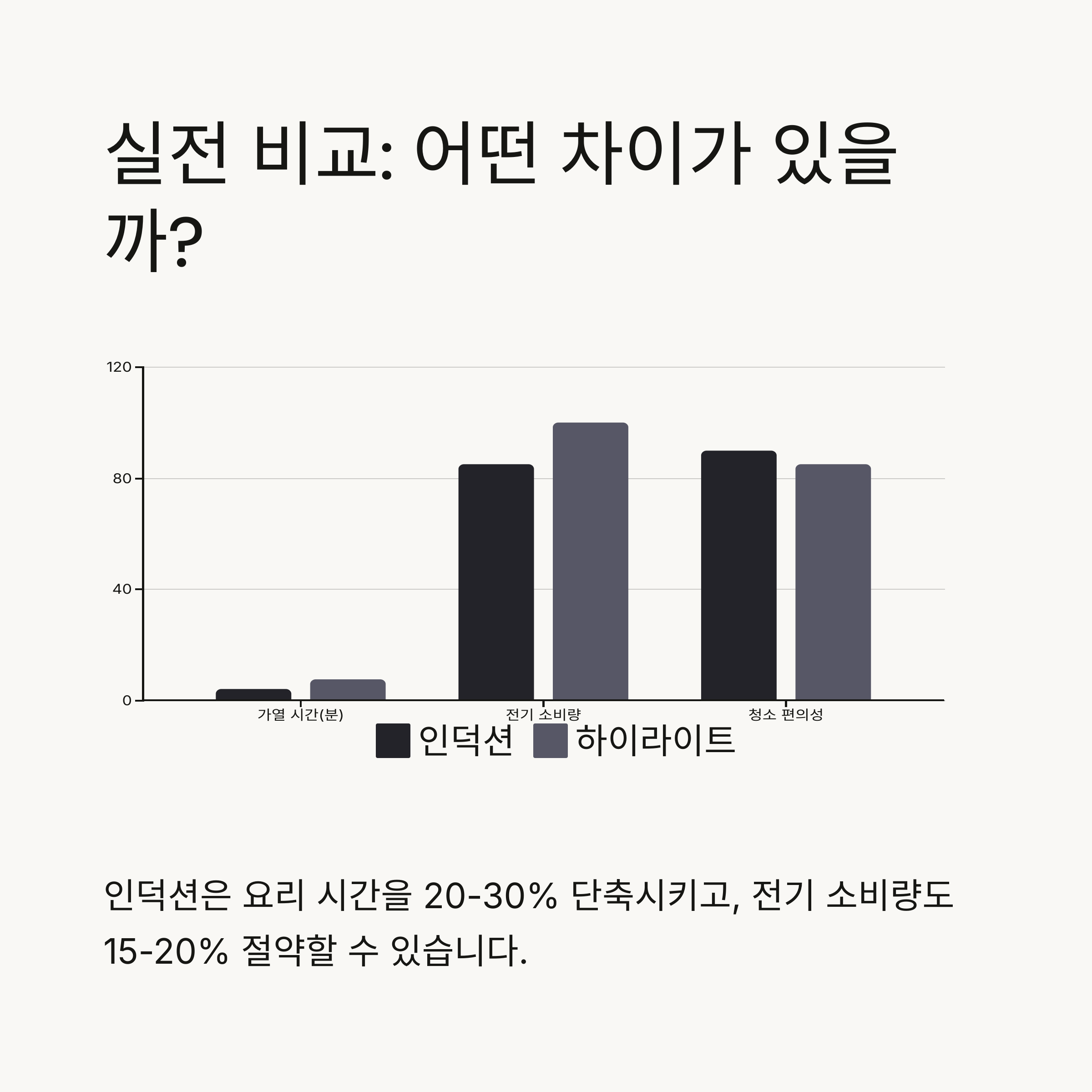 🔍 핵심 차이점: 인덕션은 조리기구를 직접 가열하지만, 하이라이트는 상판을 일정 온도로 유지해 간접적으로 조리기구를 가열합니다