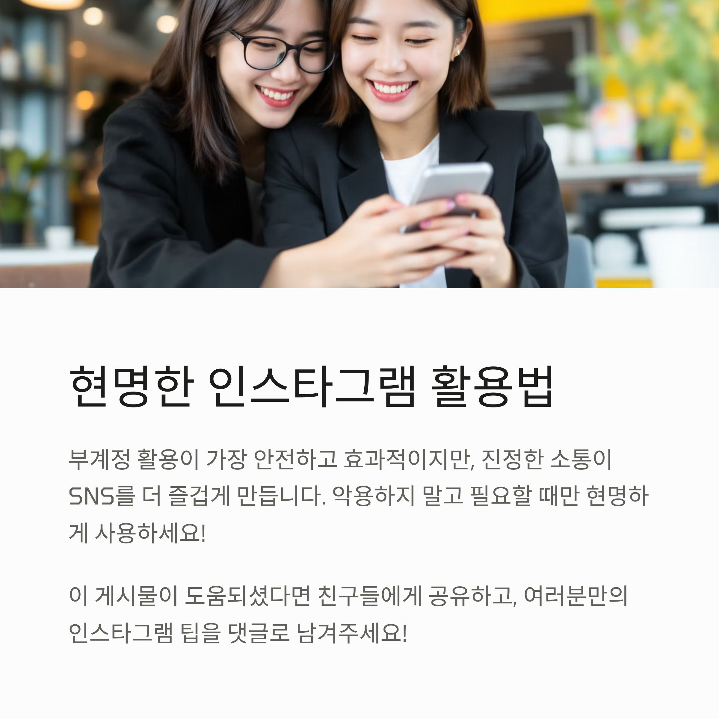 여러분은 어떤 방법으로 인스타그램을 활용하고 계신가요? 댓글로 여러분만의 팁이나 경험을 공유해 주세요!