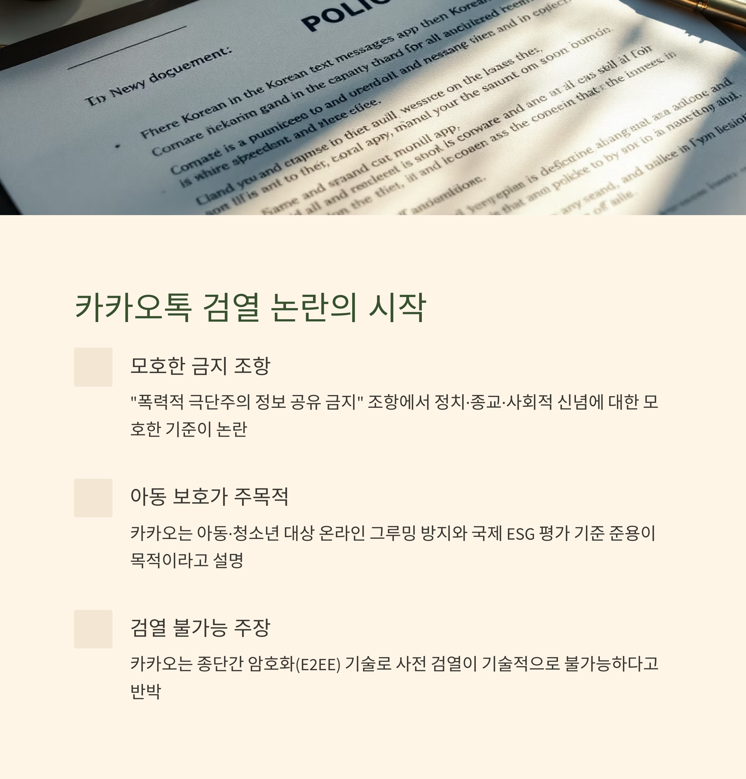 사실 이번 정책 개정은 아동 보호 강화가 주목적이었어요. 최근 카카오톡 오픈채팅방을 통한 아동·청소년 대상 온라인 그루밍 사건이 꾸준히 발생했고, 국제 ESG 평가 기준을 준용한 조치라고 카카오 측은 설명했습니다.