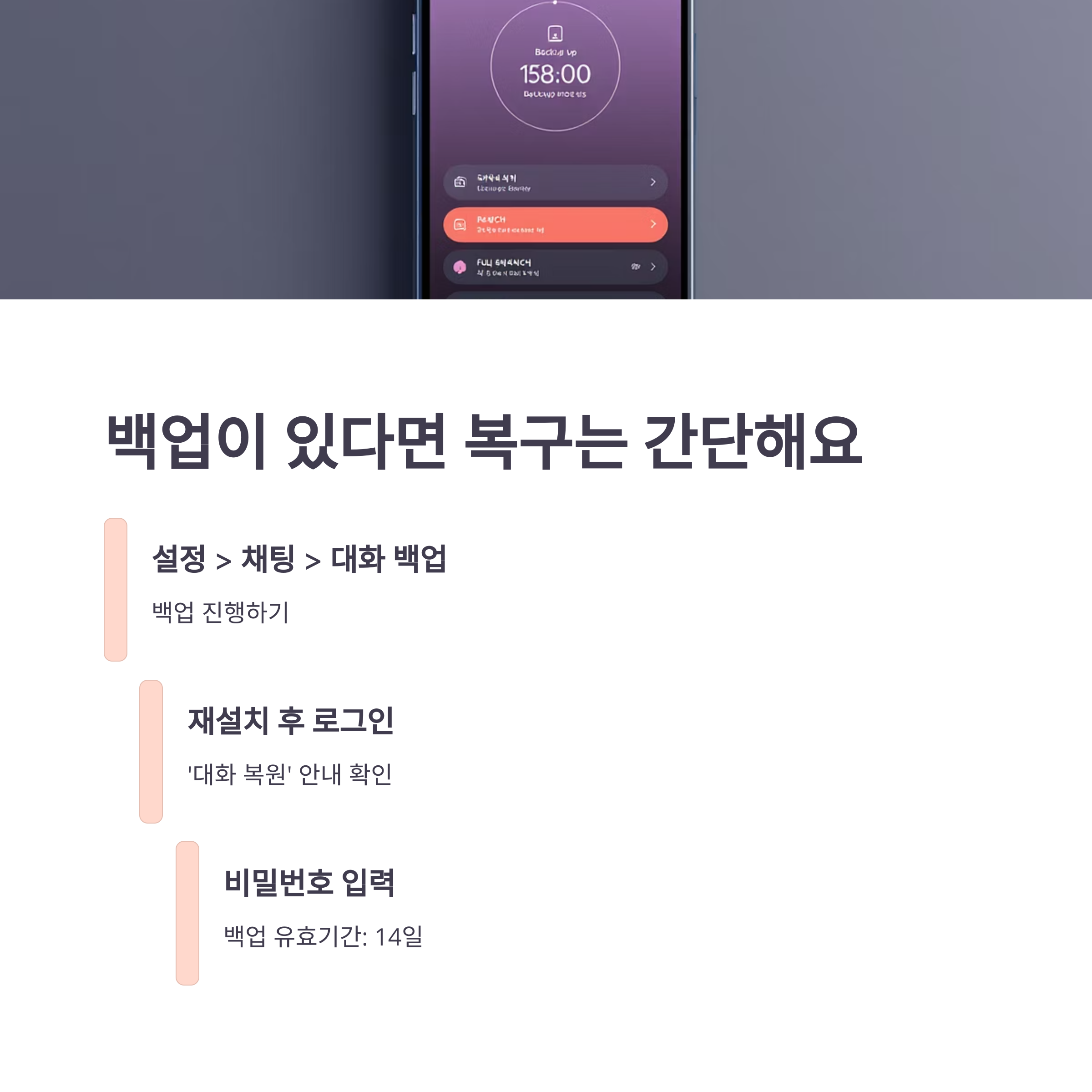 정기 백업만이 진정한 수호천사! 설정에서 자동 백업 알림을 켜두면 실수도 걱정 없어요. 중요한 대화는 스크린샷이나 이메일로 이중 저장해두면 더 안전하답니다.