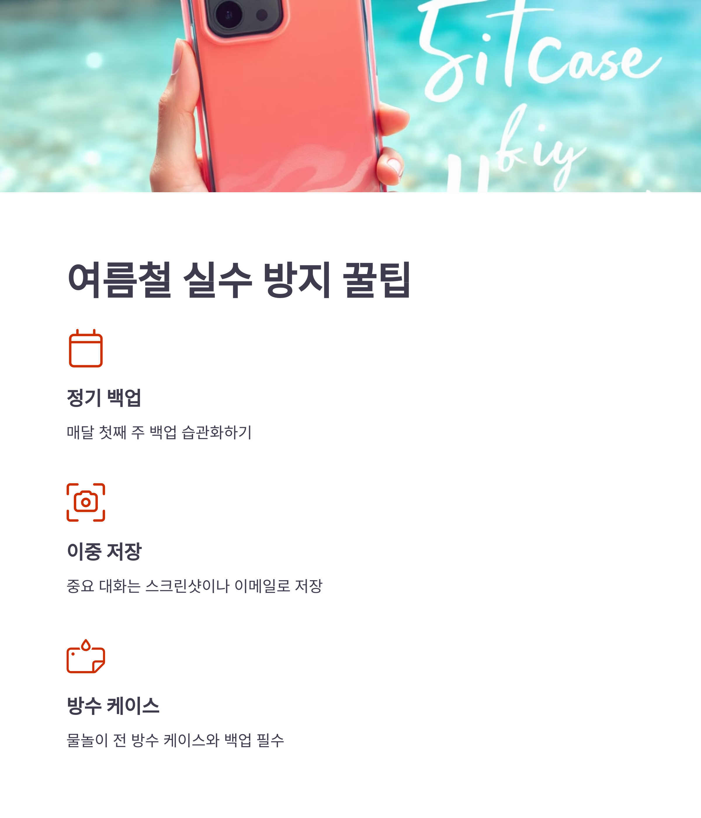 여름에는 땀이나 물 때문에 스마트폰 사고가 많죠. 저도 해변에서 폰을 떨어뜨려서 카카오톡 대화 복구가 절실했어요.