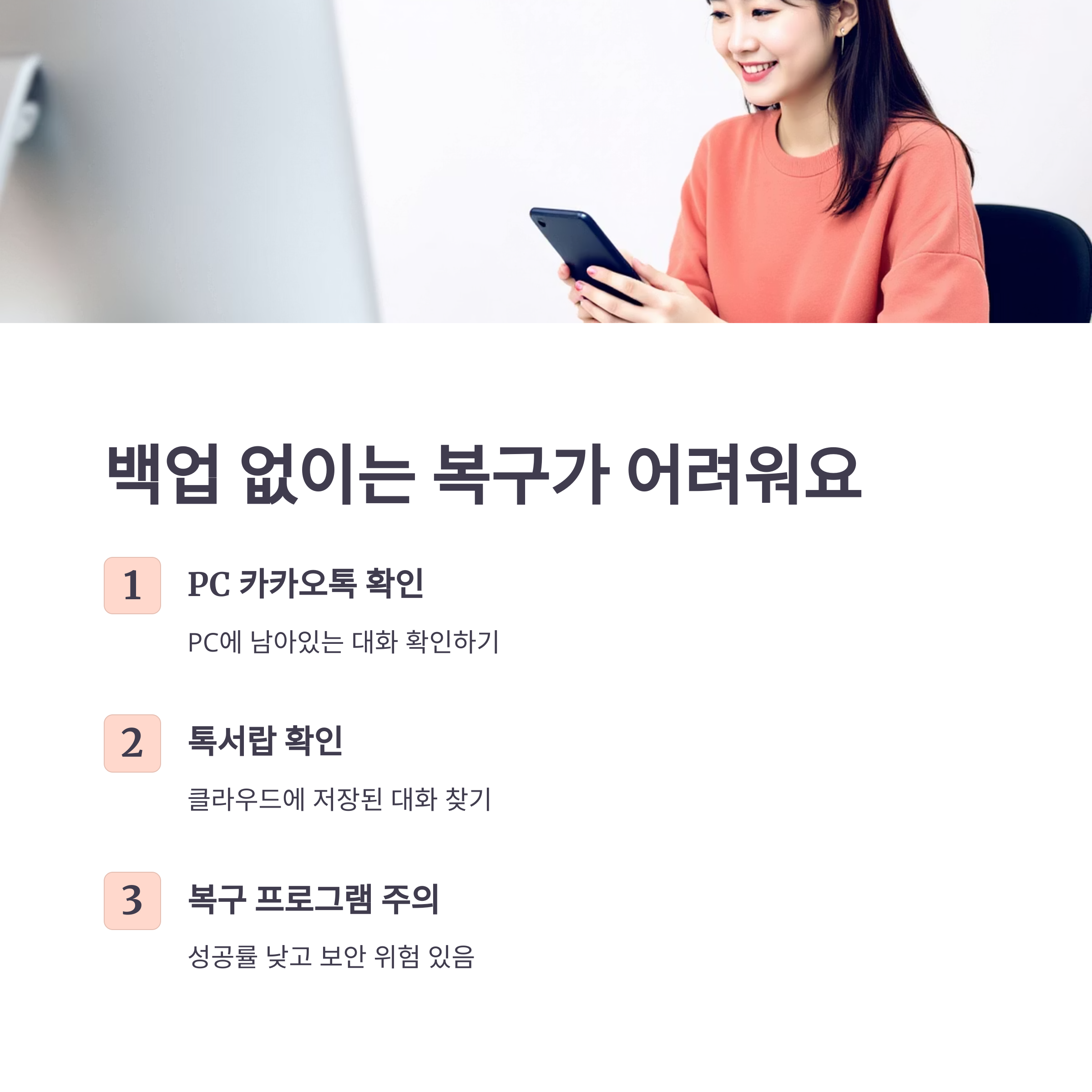 즉시 백업 여부를 확인하고, PC나 톡서랍에 남아 있는지 찾아보세요!