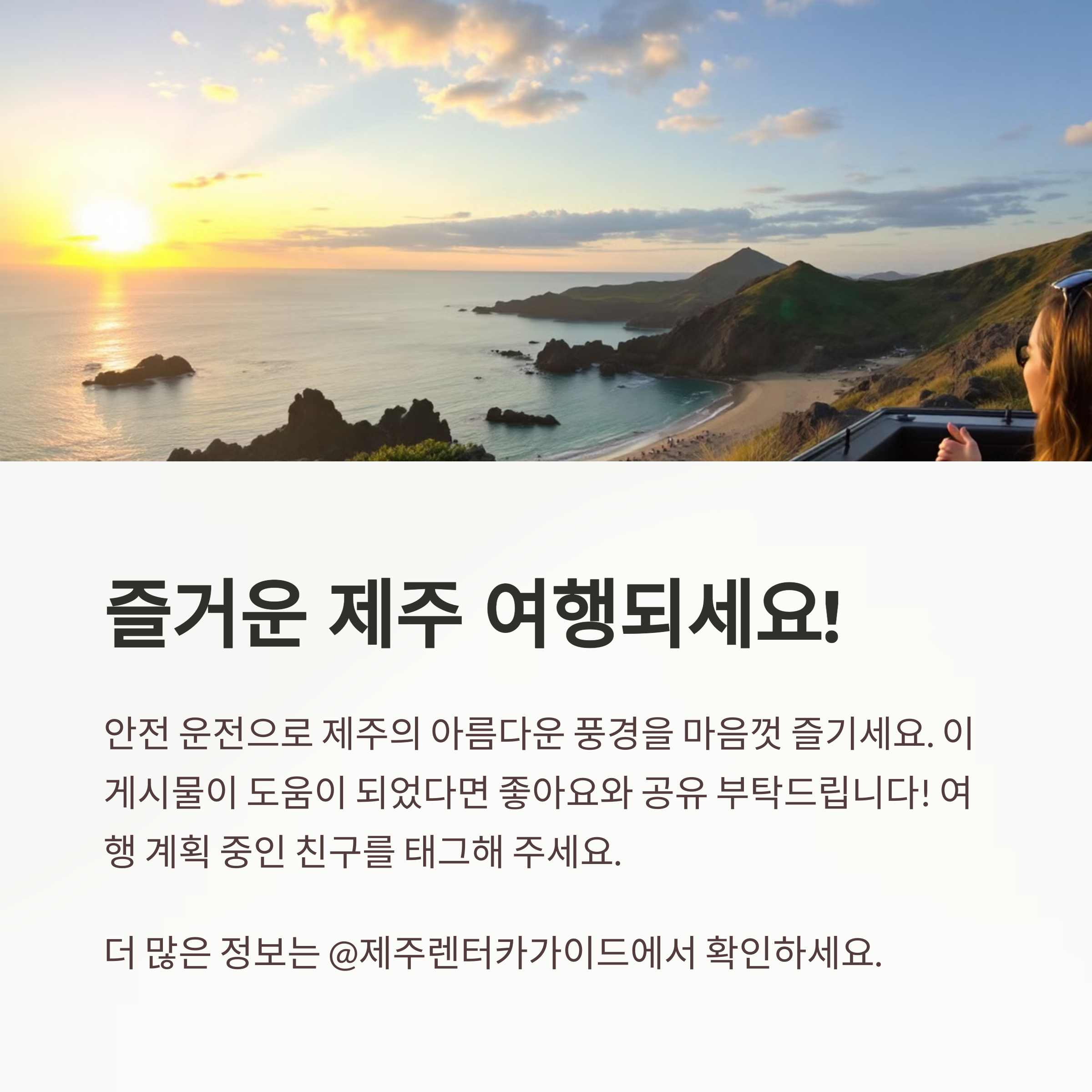 또한 제주도는 렌터카 사고율이 전국 평균보다 30% 높다는 통계가 있어요. 여행의 즐거움이 사고로 망치지 않도록 안전운전을 최우선으로 생각해주세요!