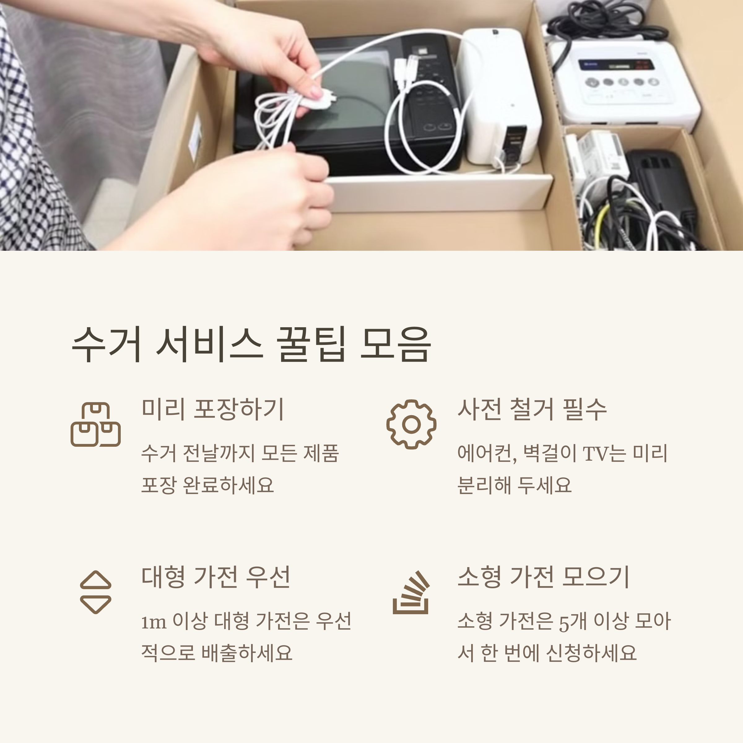 - 폐가전제품은 가능한 현관 앞이나 접근하기 쉬운 곳에 준비해두세요